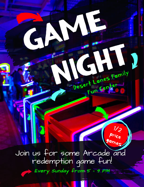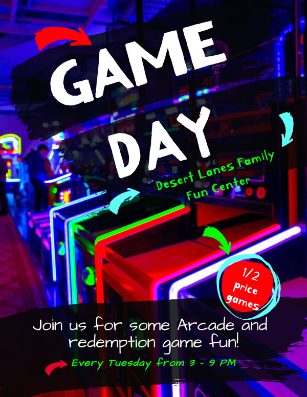 1/2 price arcade 5 p.m.- close